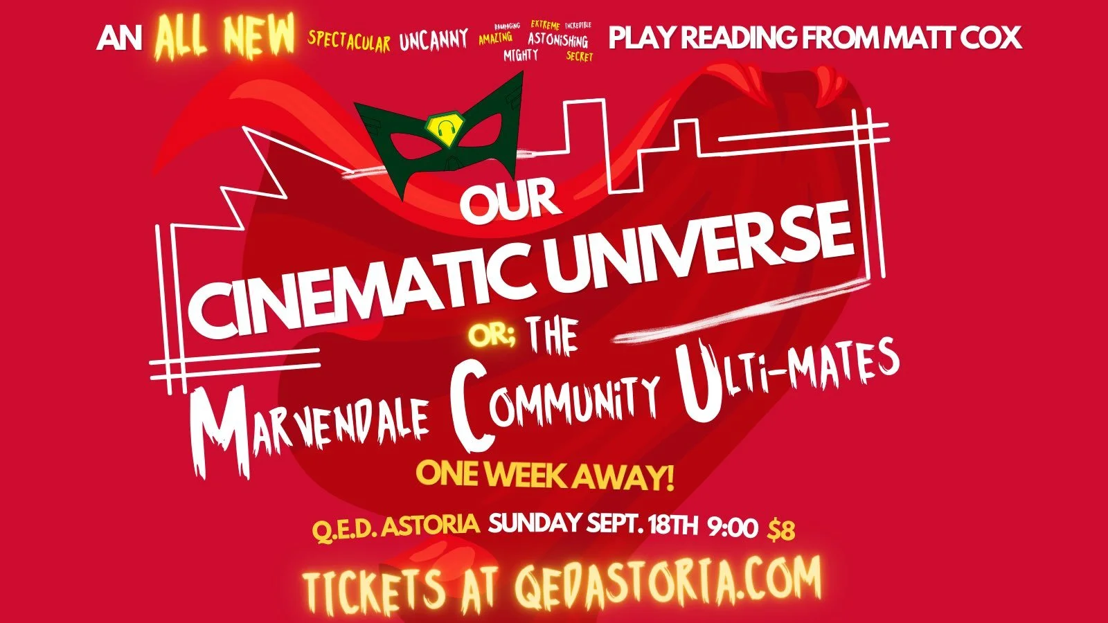 Our Cinematic Universe has had one partial public reading and is a work in progress. If you’re interested in becoming a part of the development process of the play, let me know!